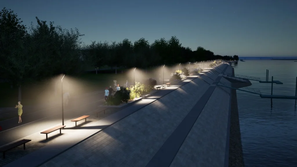 Uz novu obaloutvrdu, projekt uključuje izgradnju pješačke i biciklističke staze te novu javnu rasvjetu, a cijeli će prostor biti dodatno ozelenjen sadnjom više od dvije stotine stabala i tisuća biljaka. Time se nastavlja stvaranje kontinuirane, uređene i zelene promenade koja već sada doseže više od deset kilometara.